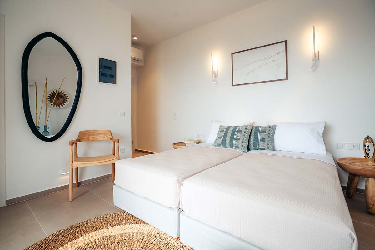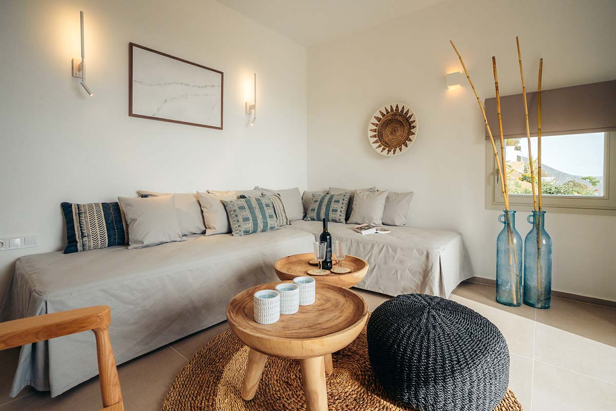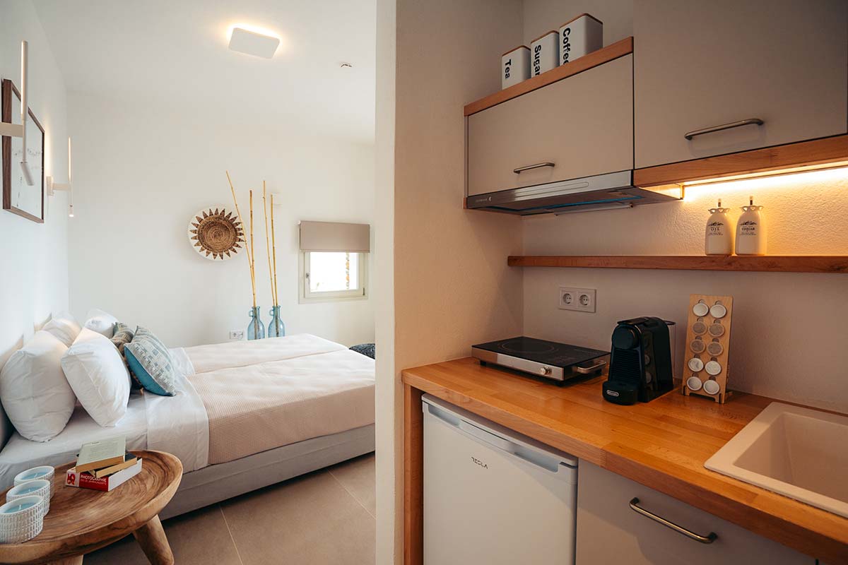 Η κατοικία Κυψέλη έχει σχεδιαστεί με ιδιαίτερη προσοχή στη λειτουργικότητα και την αισθητική, προσφέροντας έναν άνετο και μοντέρνο χώρο. Το υπνοδωμάτιο προσφέρει άνεση και διαθέτει μεγάλο διπλό κρεβάτι, ενώ το καθιστικό με τη μοντέρνα επίπλωση είναι ένας χώρος όπου μπορείτε να χαλαρώσετε και να απολαύσετε τη θέα στη θάλασσα. Διαθέτει δύο μπάνια, ένα στο υπνοδωμάτιο και ένα στο σαλόνι. Το σαλόνι μπορεί να μετατραπεί σε πλήρως λειτουργικό δεύτερο υπνοδωμάτιο με δύο κανονικά μοvά κρεβάτια. Η μικρή κουζίνα διαθέτει τον βασικό εξοπλισμό, επιτρέποντάς σας να ετοιμάζετε τα γεύματά σας.